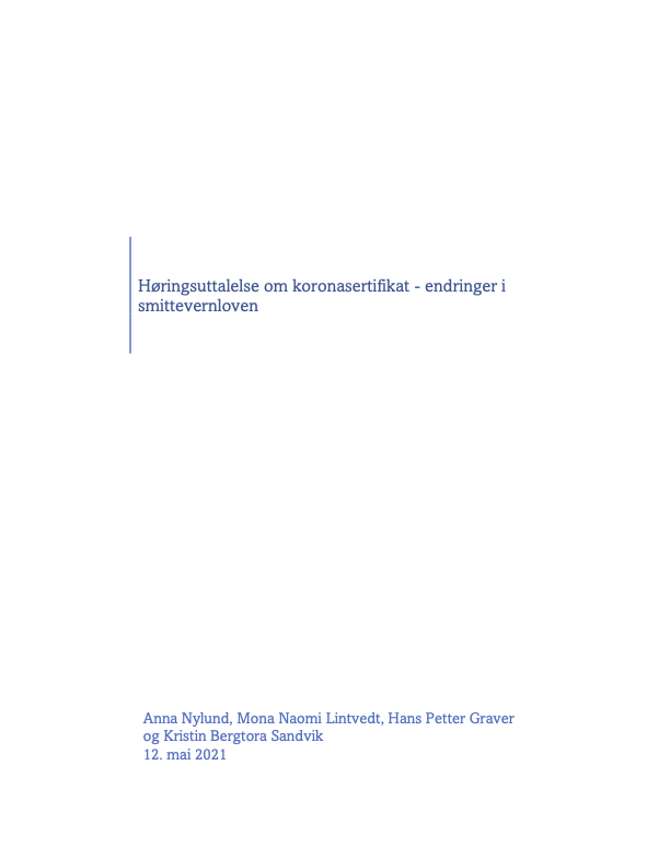 horingsuttalelse koronasertifikat- graver mfl